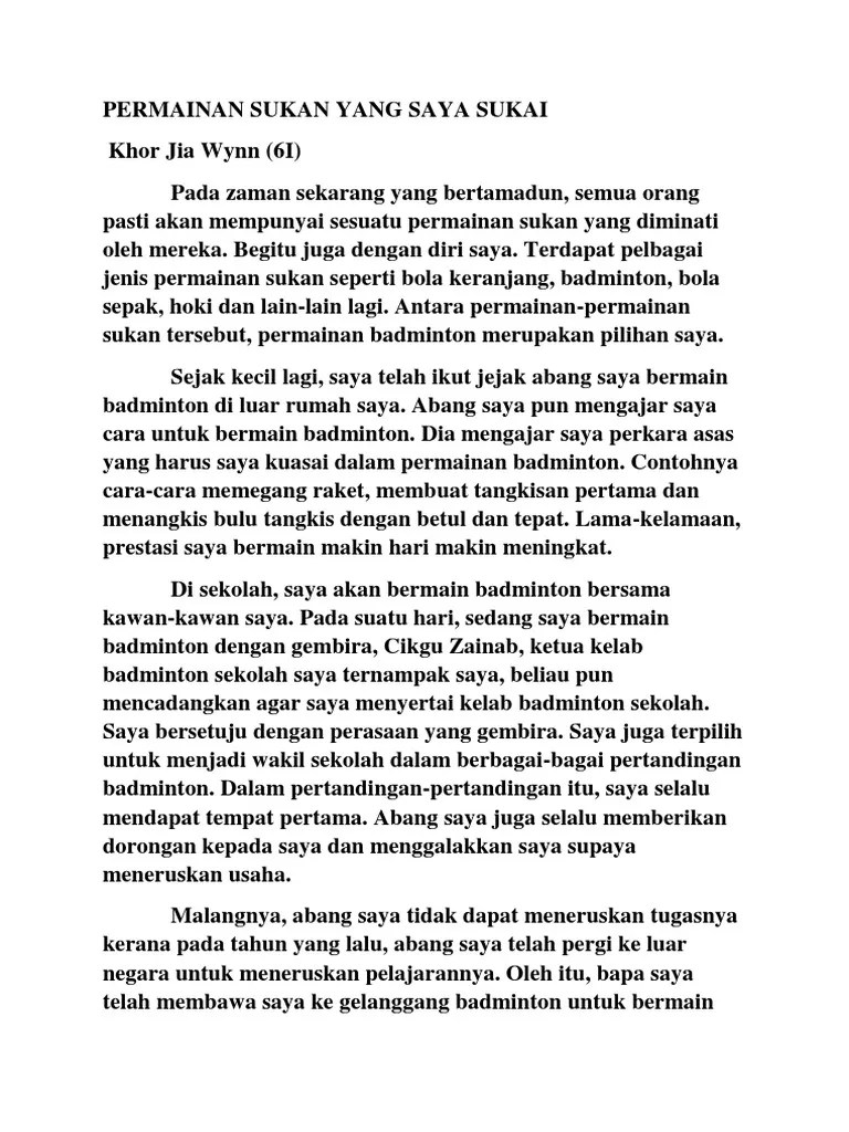 Karangan Hobi Saya Bermain Badminton / Hobi Saya Karangan Qn855grvj8n1